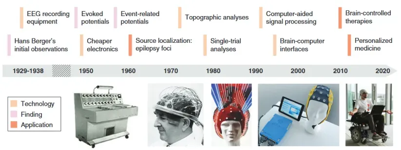 1924年,汉斯伯格(Hans Berger)测量并证实一种反映大脑活动的电流,即脑电信号(EEG),这相当于打开了一扇观察大脑的窗户。